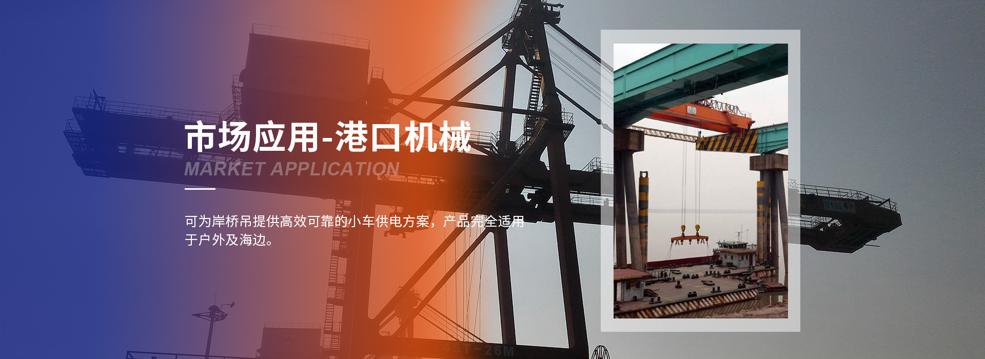 可為岸橋吊提供高效可靠的小車(chē)供電方案,產(chǎn)品完全適用于戶(hù)外及海邊。